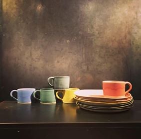 恒例のChristiane Perrochon展。今回はたっぷりスープを飲めるカップや同色のプレートがメイン。大好きなシェルシリーズ作品も。