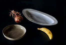 今回のペロション展は、大きめのオーバル平皿や、ゆらいだフォルムが美しいシェルシリーズのボウルが並びます。