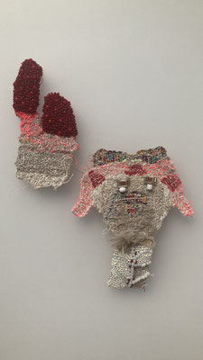 それらを用いて手刺繍やミシン刺繍による「小さな織りもの」として制作。
