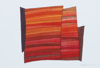 油彩、ドローイング、版画、さまざまな技法を通して、画面と対話してきた周豪さん。色、線、形、そのひとつひとつに画家の呼吸が宿る。
